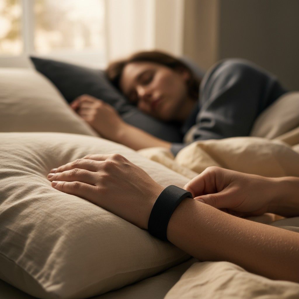 The silent alarm bracelet designed for heavy sleepers and couples who need peace in the morning.